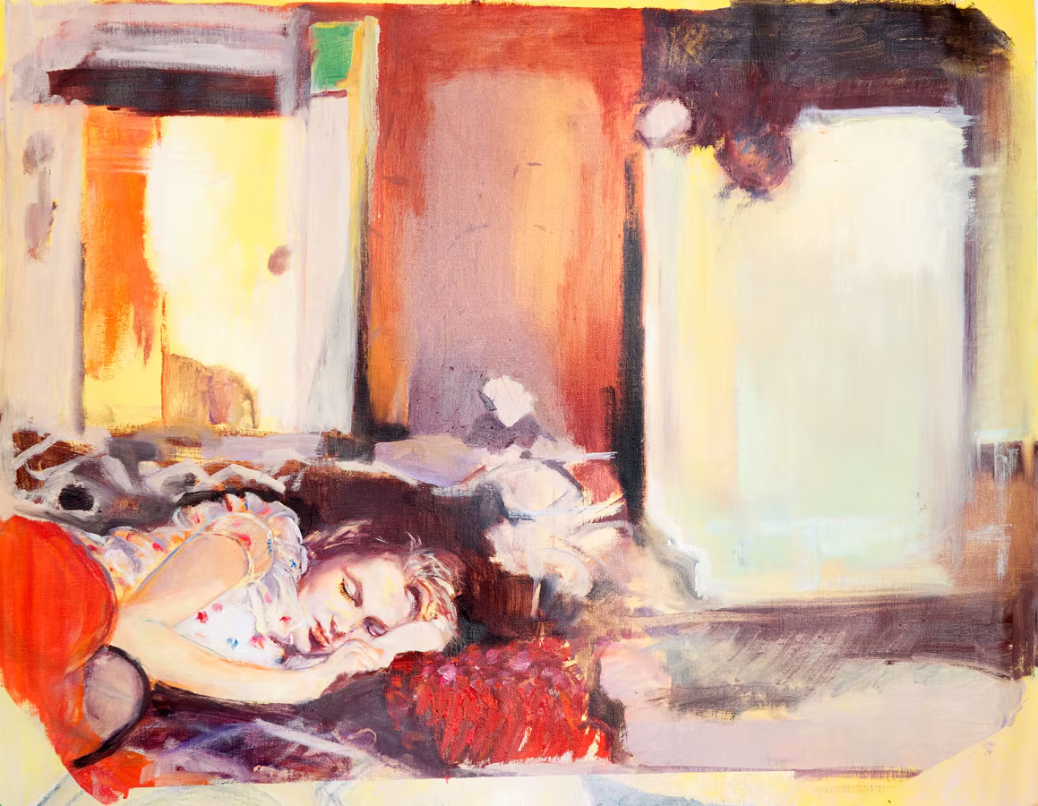 Denna målning kom till då jag ville skildra unga kvinnors sårbara position i vår samtid. Den är en av flera i samma serie, vilka visades i min soloutställning på Galleri Lorentzon i Stockholm 2012.Det är också det verk jag vann Tellervo Tikkanens stipendium av Suomiart.